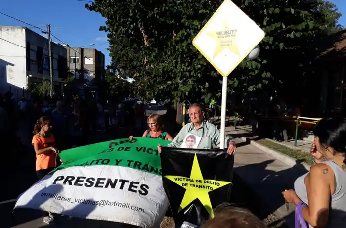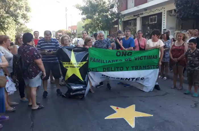 Además de dibujar la estrella sobre el asfalto, se instaló un cartel sobre la vereda con su nombre, su fecha de nacimiento y el día en que fue arrollado y falleció. También hubo banderas pidiendo Justicia por otras víctimas.