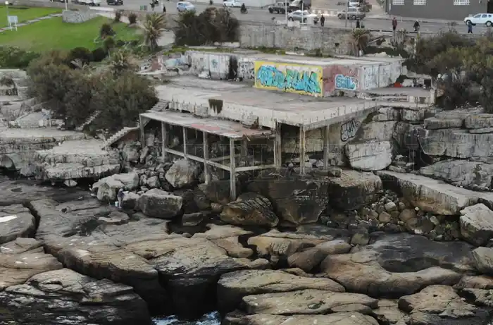 Aunque las paredes y techos de las edificaciones que habían levantado los concesionarios fueron tirados abajo, la estructura de hormigón del restaurante se mantiene en pie entre las rocas. Allí se suele ver a personas en situación de calle que buscan un refugio de la lluvia y el frío.