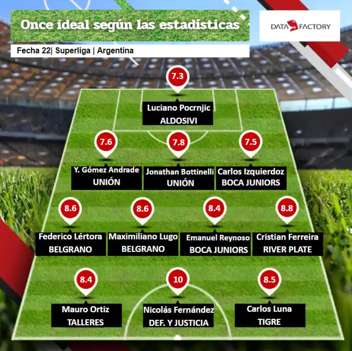 El arquero de Aldosivi, Luciano Pocrnjic, fue elegido por Data Factory como el arquero ideal de la fecha 22 de la Superliga. A pesar de la derrota ante Independiente, el "1" fue elegido por tener un promedio de 7.3 puntos.