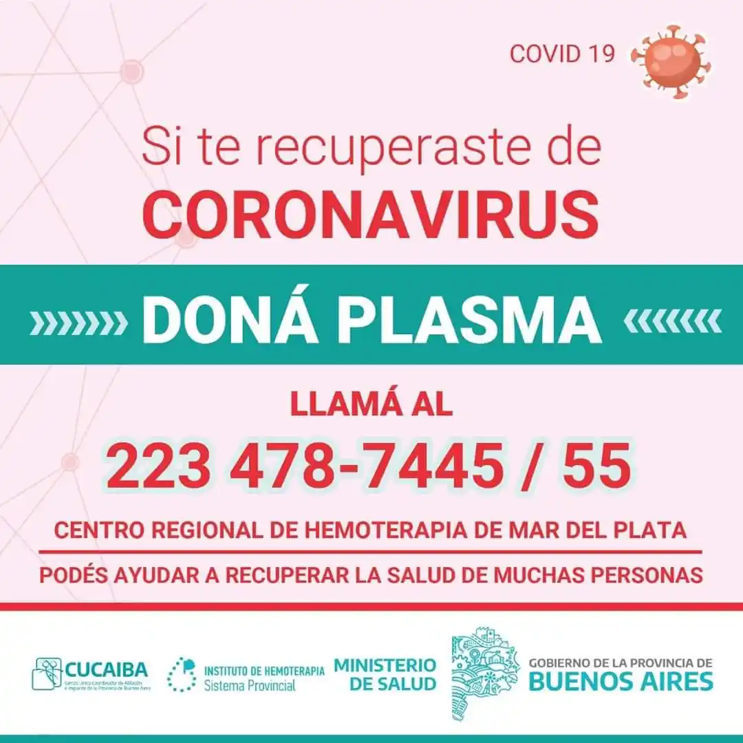 En aquel entonces, Verónica Coppolillo, directora del Centro Regional de Hemoterapia de Región Sanitaria VIII, explicó a El Marplatense que, si bien hubo dos marplatenses recuperados que donaron plasma, cuando no existe un grupo sanguíneo compatible en un lugar, "hay que traerlo de otro lugar, que fue el caso de Mar del Plata".
