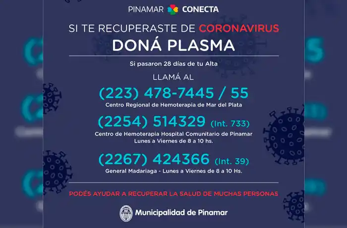 "Ya están donando los primeros recuperados y desde Salud nos dicen que el nivel de interés es alto", confió una fuente del ejecutivo a El Marplatense.