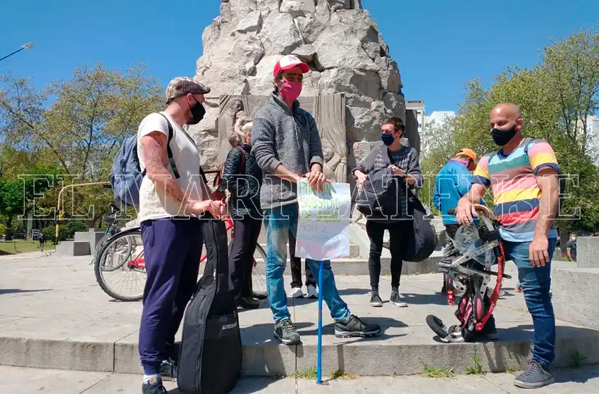 Este jueves al mediodía visibilizaron su realidad con una manifestación en el Monumento a San Martín (Luro y Mitre). Un referente del sector, Facundo Mosquera, explicó que "estamos pidiendo muchas cosas porque son varios sectores que están en una situación muy complicada en lo artístico. Pero una de las cosas es que se declare la emergencia cultural porque hace 200 días que estamos sin poder desarrollar ningún tipo de actividad ya sea lo que es espectáculo, también como lo son las clases y diferentes cosas que los artistas hacemos para vivir".
