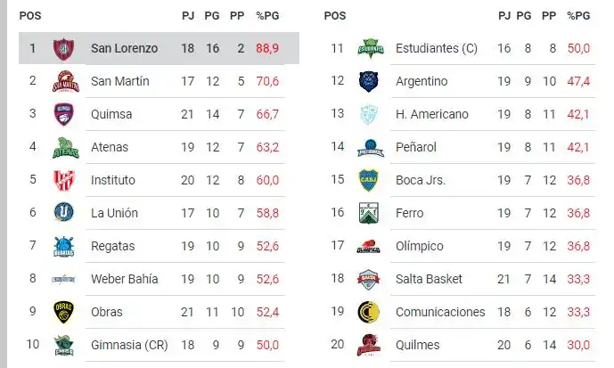 Este domingo ganaron tres equipos en esa lucha. Comunicaciones superó a Obras por 76 a 75, Boca hizo lo propio frente a Ferro por 77 a 71 y Salta Básket dio la sorpresa tras vencer con autoridad a San Lorenzo por 85 a 70.