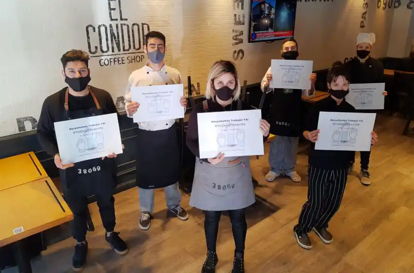 Bajo la consigna "yo doy presente", trabajadores gastronómicos se presentaron este martes en sus lugares de trabajo a modo de protesta para exigir la reactivación turística y la apertura de los locales.