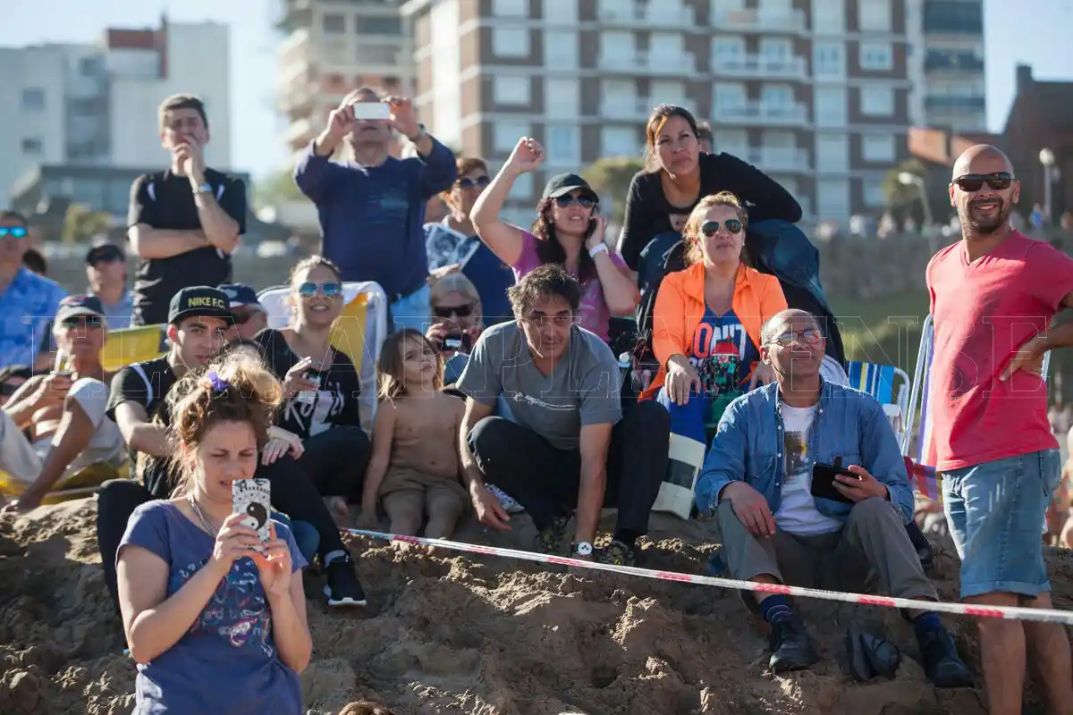 Durante todo el sábado gran cantidad de gente estuvo en Playa Grande observando los trabajos de remoción del "Victoria I".