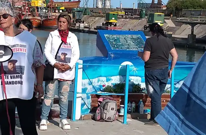 Este jueves, en la Banquina del Puerto, colmaron la zona con banderas y fotos de los tripulantes fallecidos. "Queremos que todos sean recordados y a su vez recordarles a todos que hay una orden urgente que desde hace más de 90 días se debía ejecutar", lamentaron.
