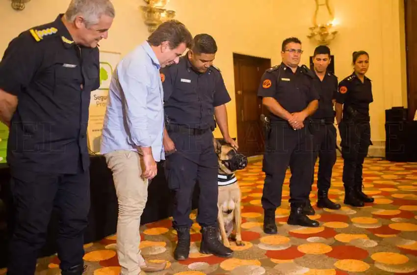 El ministro destacó la participación estelar de un efectivo muy particular, que estuvo presente en la sala: "Hay un perro estrella, Gueto, que detecta drogas donde nadie las detecta. Trabaja en el ingreso a Mar del Plata y a detectado muchísima droga en pequeñas y grandes cantidades en el ingreso a la costa".