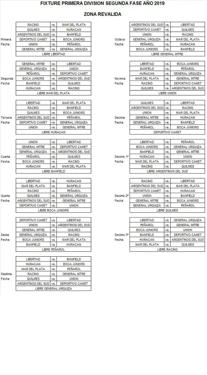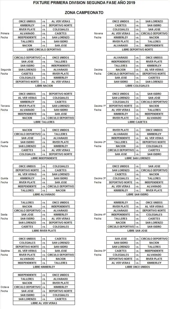 Tanto la Zona Campeonato (15 equipos) y la Reválida (13) tienen definido el camino. En cada jornada, habrá un equipo que tendrá fecha libre y la zona "de abajo" tendrá dos parates para terminar al mismo término que la de arriba.