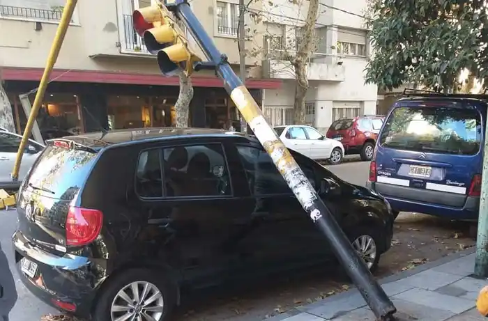 Se cayó un semáforo arriba de un auto y una mujer resultó herida