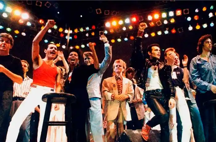 Hace 35 años, convocados por el líder de Boomtown Rats, el irlandés Bob Geldof, 76 megaestrellas mundiales del rock y el pop se repartían en dos escenarios simultáneos, en el Estadio Wembley, de Londres, y el John F. Kennedy Stadium, de Filadelfia; para protagonizar el concierto benéfico más importante de la historia, con el objetivo de ayudar a combatir la hambruna en África.