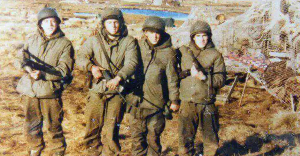 La fotografía que acompaña esta nota guarda una historia fascinante. Fue tomada por un suboficial argentino a mediados de mayo de 1982 en Port Harriet, en cercanías de Puerto Argentino.
