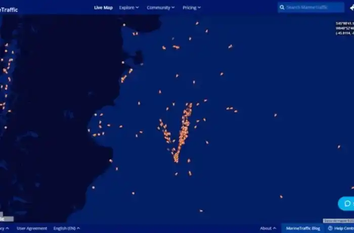 Según se pudo comprobar, cientos de barcos extranjeros, la mayoría chinos, pero también coreanos y españoles se agolpan frente al Mar Argentino, en aguas internacionales -pegadas a la zona económica exclusiva que administra el país hasta las 200 millas- . En esta zona ya no hay ley nacional ni global que pueda combatir la depredación de superficie y de fondos- que según un monitoreo efectuado en 2019 ya mostraba signos de agotamiento por la sobre explotación de recursos.