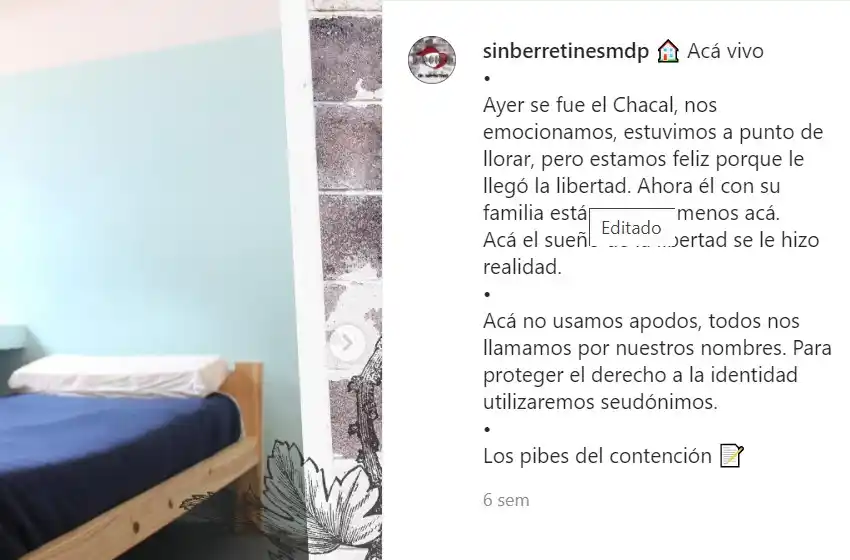 Los jóvenes alojados en el Centro de Contención de Mar del Plata, ubicado en Batán y dependiente del Organismo provincial de Niñez y Adolescencia, realizan talleres de producción de medios audiovisuales y de alfabetización digital. A través del instagram sinberretinesmdp, los menores comparten su vivencia bajo un régimen de semi-libertad, música, películas y acceden a lo que pasa en el mundo exterior.