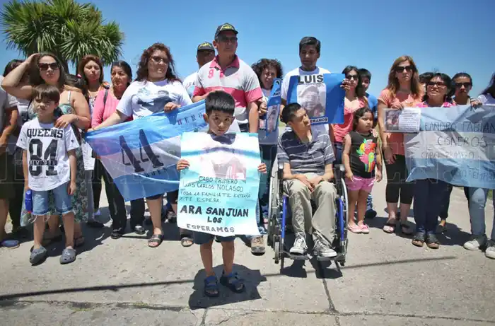 Un grupo de familiares de los tripulantes del ARA San Juan se movilizó en el mediodía de este lunes hasta la Base Naval para hacer un pedido público en el que exigen que las embarcaciones rusas no abandonen la búsqueda del submarino, que permanece desaparecido en el Atlántico Sur hace casi 50 días.