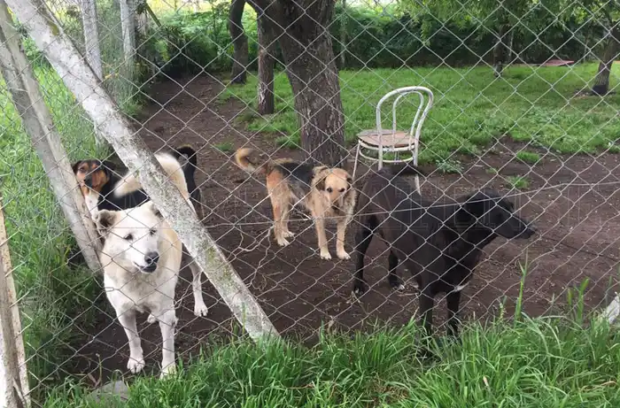 Basta pararse unos segundos afuera de la cerca que delimita los bordes de la propiedad para tener a más de diez pares de ojos mirándote fijo. Entre saltos de emoción, ladridos y sacudidas de colas, los perros se agolpan contra el cerco de madera para recibir al recién llegado.