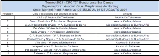 El primero será el Regional de Clubes “C” para la Región Bonaerense Sur que tendrá lugar del 29 de julio al 1° de agosto del presente año con la participación de 5 equipos de la Asociación Amateur Marplatense de Hockey (AAMH): Banco Provincia, Del Valle (Necochea), Once Unidos, Villa Gesell y Talleres.
