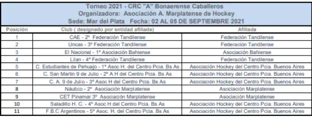 La ciudad será sede de tres campeonatos de clubes según lo informado por la Confederación Argentina de Hockey (CAH). Serán tres Regionales de Clubes, dos “A” (damas y caballeros en paralelo) y el “C” Femenino. Los detalles para todos los equipos de Mar del Plata.