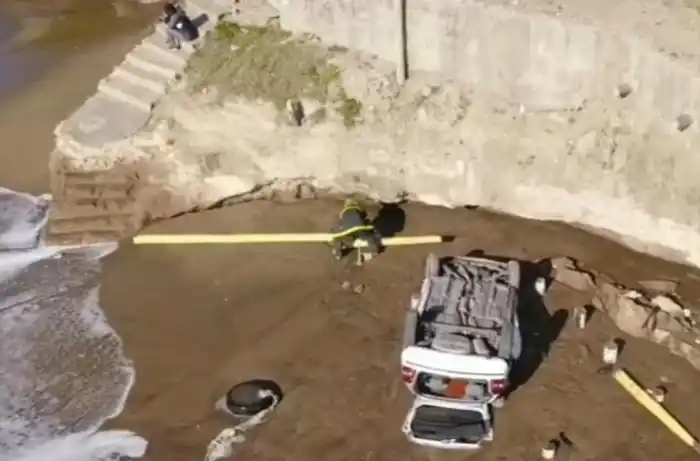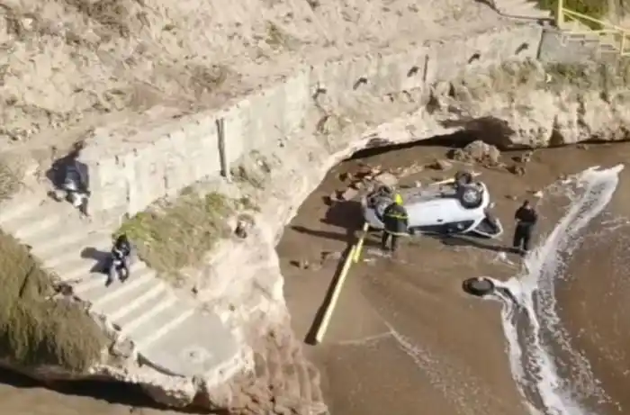Dos personas iban a realizar una actividad deportiva este domingo por la mañana en el sector costero del barrio constitución, más precisamente en la playa Morgan, pero aparentemente dejaron el auto en "punto muerto", lo que generó la caída por el barranco. Afortunadamente no hubo que lamentar víctimas ni lesionados.
