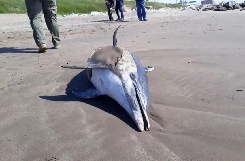 Un delfín apareció muerto en la playa Puerto Cardiel de la ciudad este viernes por la mañana. El animal presentaba heridas y los especialistas as aseguraron que quedó atrapado en una red de pesca.