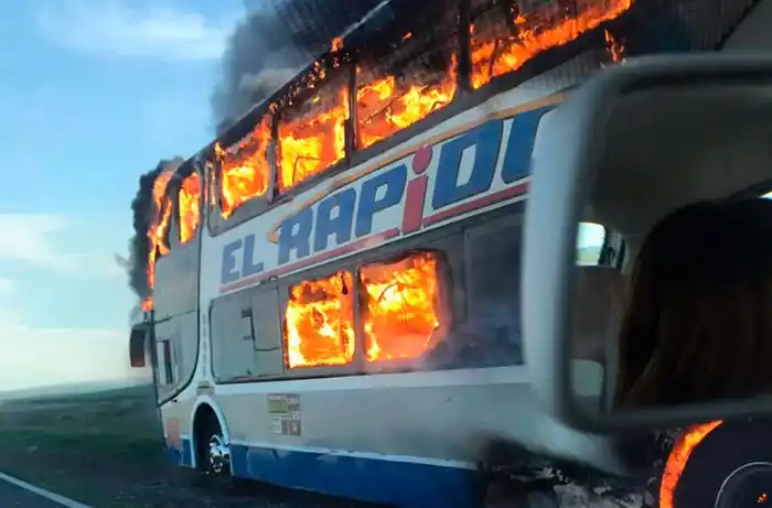 Un micro que viajaba desde Mar del Plata se incendió en la Ruta 226