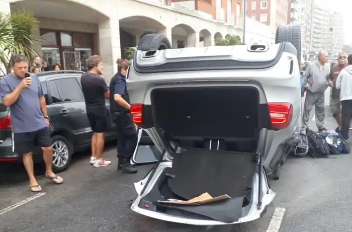 Una camioneta chocó tres autos estacionados en la costa y volcó
