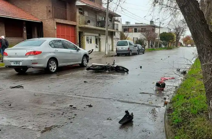 Por su parte, la moto quedó destrozada y sus partes esparcidas en medio de la calle, al igual que el casco de la conductora. Mientras que el auto sufrió daños en su parte delantera.