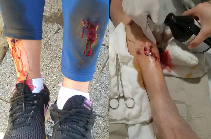 Bajando una de las rampas que permiten el acceso a la playa, dos perros feroces la atacaron y le mordieron las piernas y las rodillas. "Después de luchar tanto por 20 minutos y tirarle una botella de agua que llevaba conmigo, se calmaron y se fueron", detalló y agregó que cuando termino esa lucha "caí casi desmayada y se acercó un maratonista a preguntarme si quería una ambulancia y le dije que era demasiado tarde, porque nadie me había querido dar ayuda cuando me vieron que me estaba atacando".