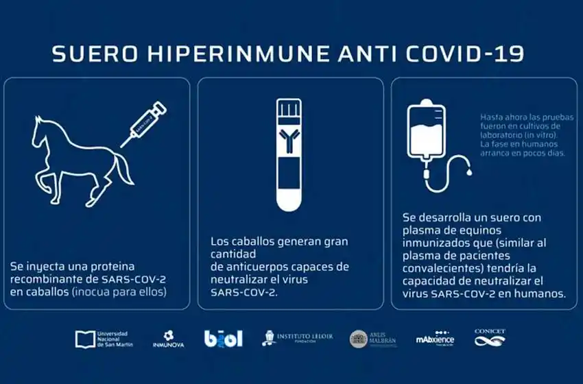 El mismo se basa en anticuerpos policlonales equinos, que se obtienen mediante la inyección de una proteína recombinante del SARS-CoV-2 en estos animales, inocua para ellos, que así tienen la capacidad de generar gran cantidad de anticuerpos capaces de neutralizar el virus.