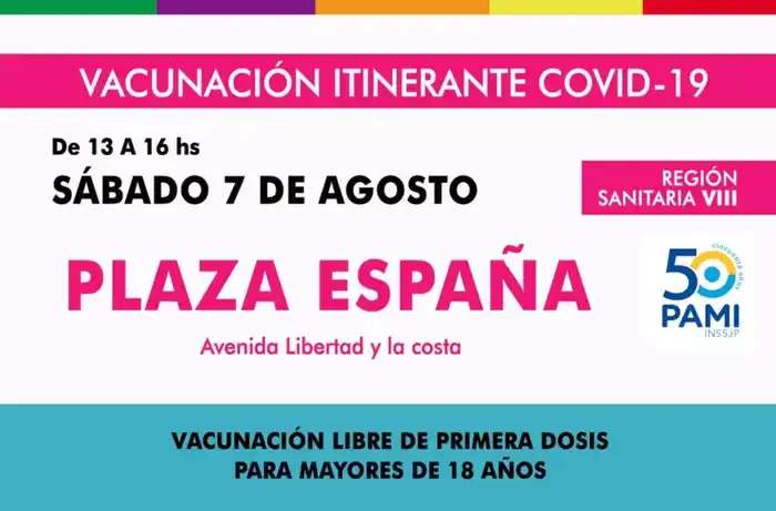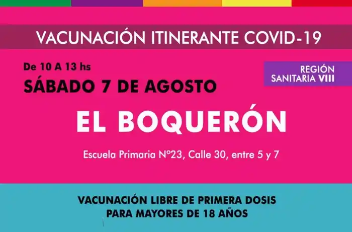 Región Sanitaria VIII, dependiente del Ministerio de Salud de la Provincia de Buenos Aires, informó en las últimas horas que este sábado se realizará una doble jornada de vacunación itinerante en Plaza España y El Boquerón, donde aplicarán la primera dosis a mayores de 18 años.