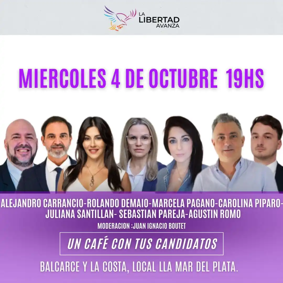 Y en tanto al encuentro que se realizarán esta tarde en el local de LLA -Balcarce y la costa-, puntualizó: "Estaremos con Rolando Demaio, Carolina Píparo, Alejandro Carrancio, Marcela Pagano, Agustín Romo y una serie de candidatos a diputados y senadores provinciales".