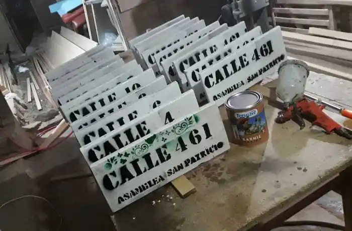 "Comenzamos por la calle 461, calle principal de nuestro barrio, y todas sus transversales, que en total fueron 30 carteles. La idea es señalizar todas las calles del barrio por tandas. Para la primera, un vecino donó la madera, otro la pintura y otro hasta una cinta refractaria", detallaron los vecinos.