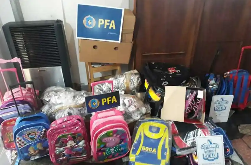 La Policía Federal, en conjunto con la AFIP y la DGA, encabezaron una serie de allanamientos que terminaron con el secuestro de zapatillas de marca y gran cantidad de mochilas de índole extranjero en infracción a la ley 22.362, con un valor de 500 mil pesos.