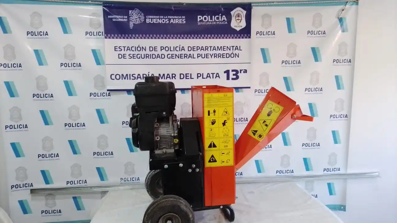 En un descampado frente al lugar, el personal halló una de las sustracciones: la máquina chipeadora marca "Echo" color naranja valuada en 1.500.000, que se encontraba tapada con una lona.