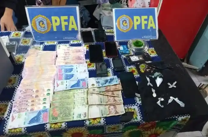 A raíz de ello, el Juzgado Federal Nº 3 a cargo de Santiago Inchausti, ordenó el allanamiento de la vivienda, donde se detuvo a dos personas y se secuestraron cinco plantas de marihuana de gran tamaño, que arrojaron un peso aproximado de 22 kilogramos, 7 envoltorios de cocaína, 7 teléfonos celulares, 17.920 pesos en efectivo producto de la venta de la droga y demás elementos de interés para la causa.