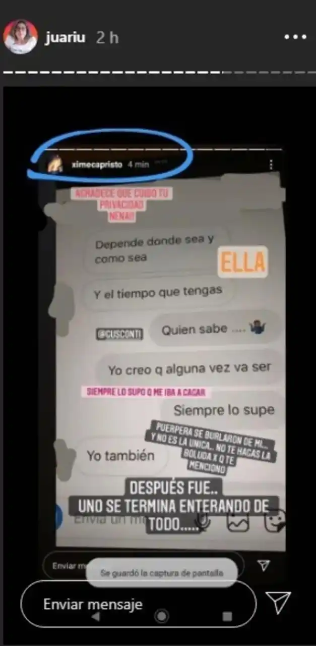 En las últimas horas, Ximena Capristo (43) sorprendió a todos sus seguidores de Instagram al publicar en sus historias varias capturas de chat de su esposo, Gustavo Conti (45), con una misteriosa mujer.