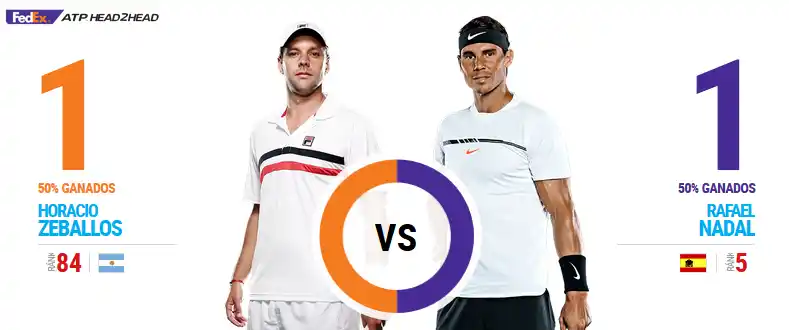 El H2H contabiliza una victoria de cada lado: la primera, del lado de Nadal en un lejano Roland Garros 2010. El triunfo restante, con resultado favorable al marplatense, había sido en la final del ahora extinto ATP 250 Viña del Mar (2013).