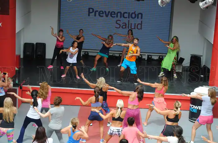 Aier invitó al público a que se acerque y sea protagonista de esta jornada de porta, ya que remarcó que para realizar esta disciplina fitness "no importa la edad ni la condición física que tengás". "Vos tenés que venir y disfrutar la música", sostuvo.